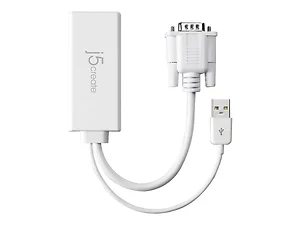 J5 Create VGA to HDMI Video adapter JDA214 allows you to connect the VGA input from your laptop, Desktop to the HDMI output of a monitor or projector by converting the VGA video signal from the input device into a HDMI output and with a built-in USB power cable the device is powered using the USB port on your computer. The adapter Supports resolutions including high definition 1080p, up to 1920x1080. The Adapter can also increase your productivity by extending your computer's desktop onto a secondary monitor, doubling available workspace. This adapter has a high quality, compact design for long term durability and a minimal footprint. @@ Plug and Play@@ No software required@@ Easily transform your VGA device into a HDMI connection@@ Supports video resolutions up to 1920x1080@@ Supports USB audio@@ Built-in USB power cable the device is powered using the USB port on your computer.@@ Compact light weight design Environments Device:@@ VGA devices including, but not limited to:@@ Desktop, Laptop, Ultrabook(PCs and Macs)HDMI display devices including, but not limited to: @@ Projector@@ Display monitor@@ TV