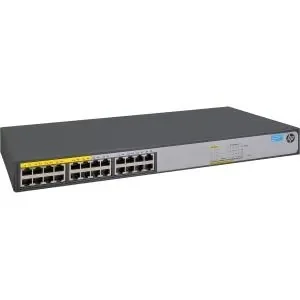 HP 1420-24G-PoE+ (124W) SwitchBrand NewIncludes Lifetime WarrantyThe HP 1420 Switch Series delivers cost effective gigabit Ethernet (1GbE) connectivity offering small businesses 10 times the performance of Fast Ethernet with unmanaged plug-and-play simplicity. The series features PoE+ for powering IP devices, fiber and 10G uplinks for connectivity to servers and storage. It supports silent fanless operation, automated features for hands off operation and low power consumption.JH019A#ABA Features:Ethernet SwitchNumber of Ports: 24Switching Capacity: 48 Gb/sFlow ControlQuality of Service (QoS)Compliant Standards:- IEEE 802.1p- IEEE 802.3/a/ab/af/at/az/i/u/xPort/Expansion Slot Details:- 12 x 1000Base-T - RJ-45 - PoE+- 12 x 1000Base-T - RJ-451 MB Flash Memory512KB Packet BufferRack-MountableInternal Power SupplyMAC Address Table Size: 8192 Entries