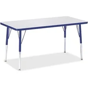 Rectangular activity table for adults is perfectly sized to let you work comfortably. Laminate is durable and features an easy-to-clean surface. TRUEdge is permanently thermo-fused to the edges to prevent chipping. Extra-safe, dual-screw steel legs allow you to easily adjust the height of the table. Powder-coated, adjustable legs can be repositioned in 1" increments to provide maximum comfort. Leg guides reduce squeaks, prevent snags and eliminate rusting.