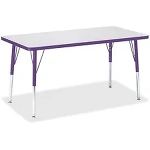 Rectangular activity table for adults is perfectly sized to let you work comfortably. Laminate is durable and features an easy-to-clean surface. TRUEdge is permanently thermo-fused to the edges to prevent chipping. Extra-safe, dual-screw steel legs allow you to easily adjust the height of the table. Powder-coated, adjustable legs can be repositioned in 1" increments to provide maximum comfort. Leg guides reduce squeaks, prevent snags and eliminate rusting.