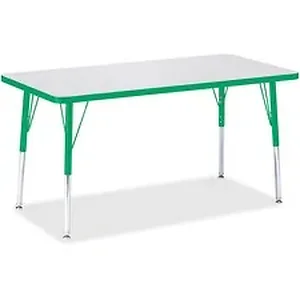 Rectangular activity table for adults is perfectly sized to let you work comfortably. Laminate is durable and features an easy-to-clean surface. TRUEdge is permanently thermo-fused to the edges to prevent chipping. Extra-safe, dual-screw steel legs allow you to easily adjust the height of the table. Powder-coated, adjustable legs can be repositioned in 1" increments to provide maximum comfort. Leg guides reduce squeaks, prevent snags and eliminate rusting.