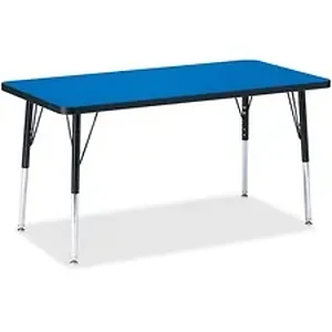 Rectangular activity table for adults is perfectly sized to let you work comfortably. Laminate is durable and features an easy-to-clean surface. TRUEdge is permanently thermo-fused to the edges to prevent chipping. Extra-safe, dual-screw steel legs allow you to easily adjust the height of the table. Powder-coated, adjustable legs can be repositioned in 1" increments to provide maximum comfort. Leg guides reduce squeaks, prevent snags and eliminate rusting.