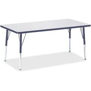 Rectangular activity table for adults is perfectly sized to let you work comfortably. Laminate is durable and features an easy-to-clean surface. TRUEdge is permanently thermo-fused to the edges to prevent chipping. Extra-safe, dual-screw steel legs allow you to easily adjust the height of the table. Powder-coated, adjustable legs can be repositioned in 1" increments to provide maximum comfort. Leg guides reduce squeaks, prevent snags and eliminate rusting.