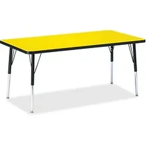 Rectangular activity table for adults is perfectly sized to let you work comfortably. Laminate is durable and features an easy-to-clean surface. TRUEdge is permanently thermo-fused to the edges to prevent chipping. Extra-safe, dual-screw steel legs allow you to easily adjust the height of the table. Powder-coated, adjustable legs can be repositioned in 1" increments to provide maximum comfort. Leg guides reduce squeaks, prevent snags and eliminate rusting.