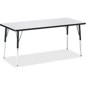 Rectangular activity table for adults is perfectly sized to let you work comfortably. Laminate is durable and features an easy-to-clean surface. TRUEdge is permanently thermo-fused to the edges to prevent chipping. Extra-safe, dual-screw steel legs allow you to easily adjust the height of the table. Powder-coated, adjustable legs can be repositioned in 1" increments to provide maximum comfort. Leg guides reduce squeaks, prevent snags and eliminate rusting.