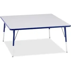 Square activity table for adults is perfectly sized to let you work comfortably. Laminate is durable and features an easy-to-clean surface. TRUEdge is permanently thermo-fused to the edges to prevent chipping. Extra-safe, dual-screw steel legs allow you to easily adjust the height of the table. Powder-coated, adjustable legs can be repositioned in 1" increments to provide maximum comfort. Leg guides reduce squeaks, prevent snags and eliminate rusting.