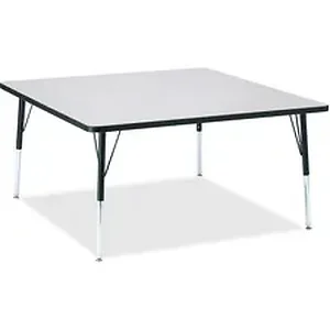 Square activity table for adults is perfectly sized to let you work comfortably. Laminate is durable and features an easy-to-clean surface. TRUEdge is permanently thermo-fused to the edges to prevent chipping. Extra-safe, dual-screw steel legs allow you to easily adjust the height of the table. Powder-coated, adjustable legs can be repositioned in 1" increments to provide maximum comfort. Leg guides reduce squeaks, prevent snags and eliminate rusting.