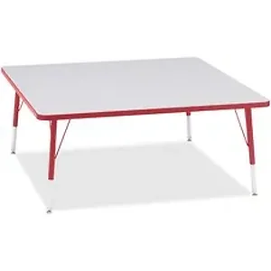 Let children safely work on their favorite arts and crafts on this square activity table. Laminate is durable and features an easy-to-clean surface. TRUEdge is permanently thermo-fused to the edges to prevent chipping. Extra-safe, dual-screw steel legs allow you to easily adjust the height of the table. Powder-coated, adjustable legs can be repositioned in 1" increments to provide maximum comfort for children. Leg guides reduce squeaks, prevent snags and eliminate rusting.