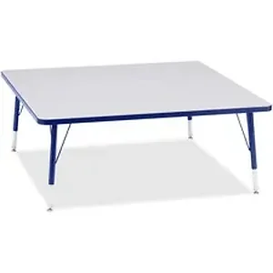 Let children safely work on their favorite arts and crafts on this square activity table. Laminate is durable and features an easy-to-clean surface. TRUEdge is permanently thermo-fused to the edges to prevent chipping. Extra-safe, dual-screw steel legs allow you to easily adjust the height of the table. Powder-coated, adjustable legs can be repositioned in 1" increments to provide maximum comfort for children. Leg guides reduce squeaks, prevent snags and eliminate rusting.