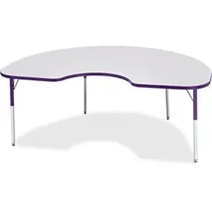 Kidney-shaped activity table for adults is perfectly sized to let you work comfortably. Laminate is durable and features an easy-to-clean surface. TRUEdge is permanently thermo-fused to the edges to prevent chipping. Extra-safe, dual-screw steel legs allow you to easily adjust the height of the table. Powder-coated, adjustable legs can be repositioned in 1" increments to provide maximum comfort. Leg guides reduce squeaks, prevent snags and eliminate rusting.