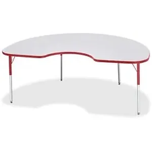 Kidney-shaped activity table for adults is perfectly sized to let you work comfortably. Laminate is durable and features an easy-to-clean surface. TRUEdge is permanently thermo-fused to the edges to prevent chipping. Extra-safe, dual-screw steel legs allow you to easily adjust the height of the table. Powder-coated, adjustable legs can be repositioned in 1" increments to provide maximum comfort. Leg guides reduce squeaks, prevent snags and eliminate rusting.