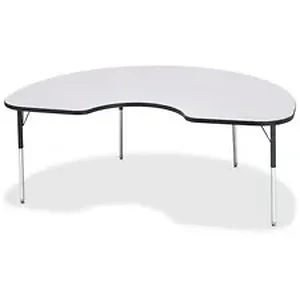 Kidney-shaped activity table for adults is perfectly sized to let you work comfortably. Laminate is durable and features an easy-to-clean surface. TRUEdge is permanently thermo-fused to the edges to prevent chipping. Extra-safe, dual-screw steel legs allow you to easily adjust the height of the table. Powder-coated, adjustable legs can be repositioned in 1" increments to provide maximum comfort. Leg guides reduce squeaks, prevent snags and eliminate rusting.