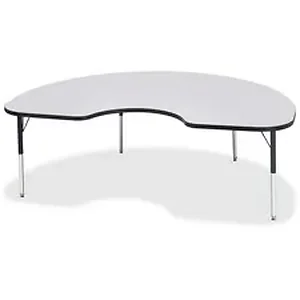 Let children safely work on their favorite arts and crafts on this kidney-shaped activity table. Laminate is durable and features an easy-to-clean surface. TRUEdge is permanently thermo-fused to the edges to prevent chipping. Extra-safe, dual-screw steel legs allow you to easily adjust the height of the table. Powder-coated, adjustable legs can be repositioned in 1" increments to provide maximum comfort for children. Leg guides reduce squeaks, prevent snags and eliminate rusting.