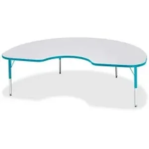 Let children safely work on their favorite arts and crafts on this kidney-shaped activity table. Laminate is durable and features an easy-to-clean surface. TRUEdge is permanently thermo-fused to the edges to prevent chipping. Extra-safe, dual-screw steel legs allow you to easily adjust the height of the table. Powder-coated, adjustable legs can be repositioned in 1" increments to provide maximum comfort for children. Leg guides reduce squeaks, prevent snags and eliminate rusting.