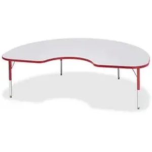 Let children safely work on their favorite arts and crafts on this kidney-shaped activity table. Laminate is durable and features an easy-to-clean surface. TRUEdge is permanently thermo-fused to the edges to prevent chipping. Extra-safe, dual-screw steel legs allow you to easily adjust the height of the table. Powder-coated, adjustable legs can be repositioned in 1" increments to provide maximum comfort for children. Leg guides reduce squeaks, prevent snags and eliminate rusting.