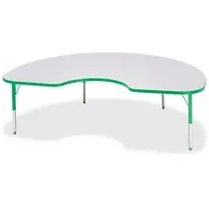 Let children safely work on their favorite arts and crafts on this kidney-shaped activity table. Laminate is durable and features an easy-to-clean surface. TRUEdge is permanently thermo-fused to the edges to prevent chipping. Extra-safe, dual-screw steel legs allow you to easily adjust the height of the table. Powder-coated, adjustable legs can be repositioned in 1" increments to provide maximum comfort for children. Leg guides reduce squeaks, prevent snags and eliminate rusting.