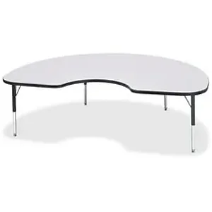 Let children safely work on their favorite arts and crafts on this kidney-shaped activity table. Laminate is durable and features an easy-to-clean surface. TRUEdge is permanently thermo-fused to the edges to prevent chipping. Extra-safe, dual-screw steel legs allow you to easily adjust the height of the table. Powder-coated, adjustable legs can be repositioned in 1" increments to provide maximum comfort for children. Leg guides reduce squeaks, prevent snags and eliminate rusting.
