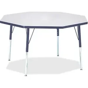Octagon activity table for adults is perfectly sized to let you work comfortably. Laminate is durable and features an easy-to-clean surface. TRUEdge is permanently thermo-fused to the edges to prevent chipping. Extra-safe, dual-screw steel legs allow you to easily adjust the height of the table. Powder-coated, adjustable legs can be repositioned in 1" increments to provide maximum comfort. Leg guides reduce squeaks, prevent snags and eliminate rusting.