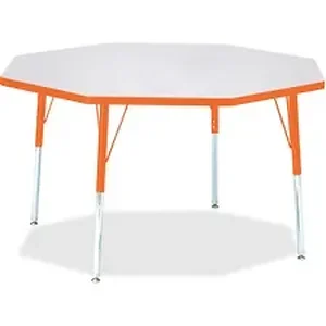 Octagon activity table for adults is perfectly sized to let you work comfortably. Laminate is durable and features an easy-to-clean surface. TRUEdge is permanently thermo-fused to the edges to prevent chipping. Extra-safe, dual-screw steel legs allow you to easily adjust the height of the table. Powder-coated, adjustable legs can be repositioned in 1" increments to provide maximum comfort. Leg guides reduce squeaks, prevent snags and eliminate rusting.