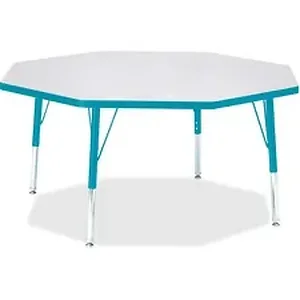Let children safely work on their favorite arts and crafts on this octagon activity table. Laminate is durable and features an easy-to-clean surface. TRUEdge is permanently thermo-fused to the edges to prevent chipping. Extra-safe, dual-screw steel legs allow you to easily adjust the height of the table. Powder-coated, adjustable legs can be repositioned in 1" increments to provide maximum comfort for children. Leg guides reduce squeaks, prevent snags and eliminate rusting.