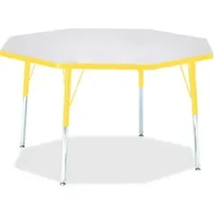 Octagon activity table provides a perfect place to work. Laminate is durable and features an easy-to-clean surface. TRUEdge is permanently thermo-fused to the edges to prevent chipping. Extra-safe, dual-screw steel legs allow you to easily adjust the height of the table. Powder-coated, adjustable legs can be repositioned in 1" increments to provide maximum comfort. Leg guides reduce squeaks, prevent snags and eliminate rusting.