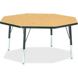 Let children safely work on their favorite arts and crafts on this octagon activity table. Laminate is durable and features an easy-to-clean surface. TRUEdge is permanently thermo-fused to the edges to prevent chipping. Extra-safe, dual-screw steel legs allow you to easily adjust the height of the table. Powder-coated, adjustable legs can be repositioned in 1" increments to provide maximum comfort for children. Leg guides reduce squeaks, prevent snags and eliminate rusting.