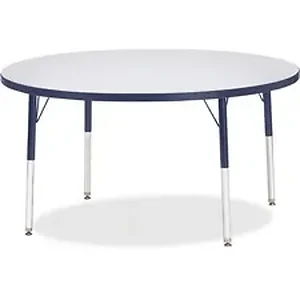 Round activity table for adults is perfectly sized to let you work comfortably. Laminate is durable and features an easy-to-clean surface. TRUEdge is permanently thermo-fused to the edges to prevent chipping. Extra-safe, dual-screw steel legs allow you to easily adjust the height of the table. Powder-coated, adjustable legs can be repositioned in 1" increments to provide maximum comfort. Leg guides reduce squeaks, prevent snags and eliminate rusting.