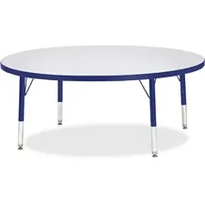 Let children safely work on their favorite arts and crafts on this round activity table. Laminate is durable and features an easy-to-clean surface. TRUEdge is permanently thermo-fused to the edges to prevent chipping. Extra-safe, dual-screw steel legs allow you to easily adjust the height of the table. Powder-coated, adjustable legs can be repositioned in 1" increments to provide maximum comfort for children. Leg guides reduce squeaks, prevent snags and eliminate rusting.