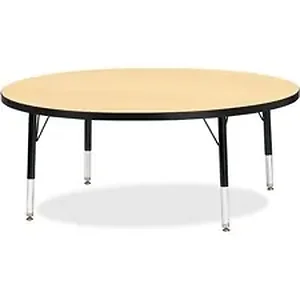 Let children safely work on their favorite arts and crafts on this round activity table. Laminate is durable and features an easy-to-clean surface. TRUEdge is permanently thermo-fused to the edges to prevent chipping. Extra-safe, dual-screw steel legs allow you to easily adjust the height of the table. Powder-coated, adjustable legs can be repositioned in 1" increments to provide maximum comfort for children. Leg guides reduce squeaks, prevent snags and eliminate rusting.
