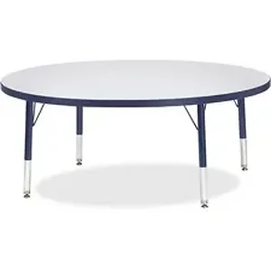 Let children safely work on their favorite arts and crafts on this round activity table. Laminate is durable and features an easy-to-clean surface. TRUEdge is permanently thermo-fused to the edges to prevent chipping. Extra-safe, dual-screw steel legs allow you to easily adjust the height of the table. Powder-coated, adjustable legs can be repositioned in 1" increments to provide maximum comfort for children. Leg guides reduce squeaks, prevent snags and eliminate rusting.