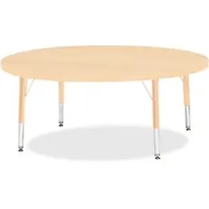 Let children safely work on their favorite arts and crafts on this round activity table. Laminate is durable and features an easy-to-clean surface. TRUEdge is permanently thermo-fused to the edges to prevent chipping. Extra-safe, dual-screw steel legs allow you to easily adjust the height of the table. Powder-coated, adjustable legs can be repositioned in 1" increments to provide maximum comfort for children. Leg guides reduce squeaks, prevent snags and eliminate rusting.