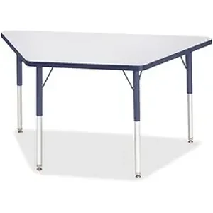 Trapezoid-shaped activity table for adults is perfectly sized to let you work comfortably. Multiple trapezoid tables can be conveniently arranged in an assortment of configurations to accommodate any space. Durable laminate features an easy-to-clean surface. TRUEdge is permanently thermo-fused to the edges to prevent chipping. Extra-safe, dual-screw steel legs allow you to easily adjust the height of the table. Powder-coated, adjustable legs can be repositioned in 1" increments to provide maximum comfort. Leg guides reduce squeaks, prevent snags and eliminate rusting.