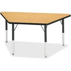 Trapezoid-shaped activity table is perfect for elementary students. Multiple trapezoid tables can be conveniently arranged in an assortment of configurations to accommodate any space. Durable laminate features an easy-to-clean surface. TRUEdge is permanently thermo-fused to the edges to prevent chipping. Extra-safe, dual-screw steel legs allow you to easily adjust the height of the table. Powder-coated, adjustable legs can be repositioned in 1" increments to provide maximum comfort for children. Leg guides reduce squeaks, prevent snags and eliminate rusting.