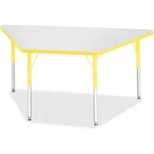 Trapezoid-shaped activity table for adults is perfectly sized to let you work comfortably. Multiple trapezoid tables can be conveniently arranged in an assortment of configurations to accommodate any space. Durable laminate features an easy-to-clean surface. TRUEdge is permanently thermo-fused to the edges to prevent chipping. Extra-safe, dual-screw steel legs allow you to easily adjust the height of the table. Powder-coated, adjustable legs can be repositioned in 1" increments to provide maximum comfort. Leg guides reduce squeaks, prevent snags and eliminate rusting.