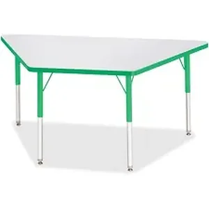 Trapezoid-shaped activity table for adults is perfectly sized to let you work comfortably. Multiple trapezoid tables can be conveniently arranged in an assortment of configurations to accommodate any space. Durable laminate features an easy-to-clean surface. TRUEdge is permanently thermo-fused to the edges to prevent chipping. Extra-safe, dual-screw steel legs allow you to easily adjust the height of the table. Powder-coated, adjustable legs can be repositioned in 1" increments to provide maximum comfort. Leg guides reduce squeaks, prevent snags and eliminate rusting.