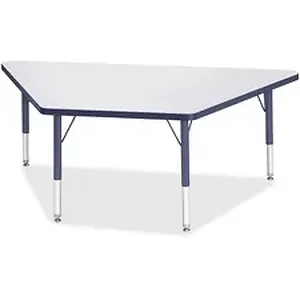 Trapezoid-shaped activity table is perfect for toddlers. Multiple trapezoid tables can be conveniently arranged in an assortment of configurations to accommodate any space. Durable laminate features an easy-to-clean surface. TRUEdge is permanently thermo-fused to the edges to prevent chipping. Extra-safe, dual-screw steel legs allow you to easily adjust the height of the table. Powder-coated, adjustable legs can be repositioned in 1" increments to provide maximum comfort for children. Leg guides reduce squeaks, prevent snags and eliminate rusting.