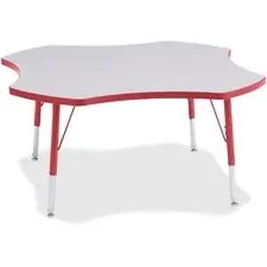 This four-leaf activity table provides the perfect seating arrangement for up to four children. Durable laminate features an easy-to-clean surface. TRUEdge is permanently thermo-fused to the edges to prevent chipping. Extra-safe, dual-screw steel legs allow you to easily adjust the height of the table. Powder-coated, adjustable legs can be repositioned in 1" increments to provide maximum comfort for children. Leg guides reduce squeaks, prevent snags and eliminate rusting.