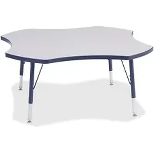 This four-leaf activity table provides the perfect seating arrangement for up to four children. Durable laminate features an easy-to-clean surface. TRUEdge is permanently thermo-fused to the edges to prevent chipping. Extra-safe, dual-screw steel legs allow you to easily adjust the height of the table. Powder-coated, adjustable legs can be repositioned in 1" increments to provide maximum comfort for children. Leg guides reduce squeaks, prevent snags and eliminate rusting.