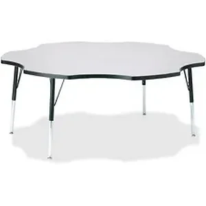 This six-leaf activity table provides the perfect seating arrangement for up to six adults. Durable laminate features an easy-to-clean surface. TRUEdge is permanently thermo-fused to the edges to prevent chipping. Extra-safe, dual-screw steel legs allow you to easily adjust the height of the table. Powder-coated, adjustable legs can be repositioned in 1" increments to provide maximum comfort. Leg guides reduce squeaks, prevent snags and eliminate rusting.