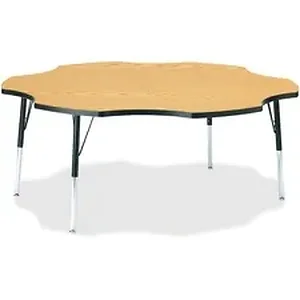 This six-leaf activity table provides the perfect seating arrangement for up to six adults. Durable laminate features an easy-to-clean surface. TRUEdge is permanently thermo-fused to the edges to prevent chipping. Extra-safe, dual-screw steel legs allow you to easily adjust the height of the table. Powder-coated, adjustable legs can be repositioned in 1" increments to provide maximum comfort. Leg guides reduce squeaks, prevent snags and eliminate rusting.