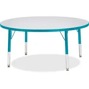 Let children safely work on their favorite arts and crafts on this round activity table. Laminate is durable and features an easy-to-clean surface. TRUEdge is permanently thermo-fused to the edges to prevent chipping. Extra-safe, dual-screw steel legs allow you to easily adjust the height of the table. Powder-coated, adjustable legs can be repositioned in 1" increments to provide maximum comfort for children. Leg guides reduce squeaks, prevent snags and eliminate rusting.