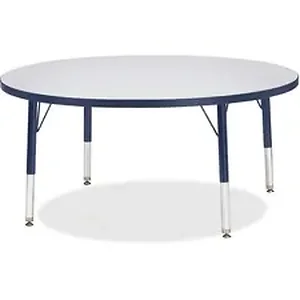 Let children safely work on their favorite arts and crafts on this round activity table. Laminate is durable and features an easy-to-clean surface. TRUEdge is permanently thermo-fused to the edges to prevent chipping. Extra-safe, dual-screw steel legs allow you to easily adjust the height of the table. Powder-coated, adjustable legs can be repositioned in 1" increments to provide maximum comfort for children. Leg guides reduce squeaks, prevent snags and eliminate rusting.