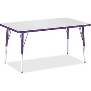 Rectangular activity table for adults is perfectly sized to let you work comfortably. Laminate is durable and features an easy-to-clean surface. TRUEdge is permanently thermo-fused to the edges to prevent chipping. Extra-safe, dual-screw steel legs allow you to easily adjust the height of the table. Powder-coated, adjustable legs can be repositioned in 1" increments to provide maximum comfort. Leg guides reduce squeaks, prevent snags and eliminate rusting.