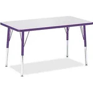 Rectangular activity table for adults is perfectly sized to let you work comfortably. Laminate is durable and features an easy-to-clean surface. TRUEdge is permanently thermo-fused to the edges to prevent chipping. Extra-safe, dual-screw steel legs allow you to easily adjust the height of the table. Powder-coated, adjustable legs can be repositioned in 1" increments to provide maximum comfort. Leg guides reduce squeaks, prevent snags and eliminate rusting.