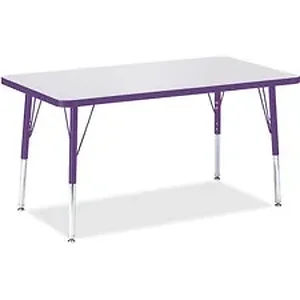 Let children safely work on their favorite arts and crafts on this rectangular activity table. Freckled gray laminate is durable and features an easy-to-clean surface. TRUEdge is permanently thermo-fused to the edges to prevent chipping. Extra-safe, dual-screw steel legs allow you to easily adjust the height of the table. Powder-coated, adjustable legs can be repositioned in 1" increments to provide maximum comfort for children. Leg guides reduce squeaks, prevent snags and eliminate rusting.