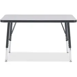 Let children safely work on their favorite arts and crafts on this rectangular activity table. Laminate is durable and features an easy-to-clean surface. TRUEdge is permanently thermo-fused to the edges to prevent chipping. Extra-safe, dual-screw steel legs allow you to easily adjust the height of the table. Powder-coated, adjustable legs can be repositioned in 1" increments to provide maximum comfort for children. Leg guides reduce squeaks, prevent snags and eliminate rusting.