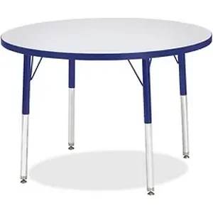 Round activity table for adults is perfectly sized to let you work comfortably. Laminate is durable and features an easy-to-clean surface. TRUEdge is permanently thermo-fused to the edges to prevent chipping. Extra-safe, dual-screw steel legs allow you to easily adjust the height of the table. Powder-coated, adjustable legs can be repositioned in 1" increments to provide maximum comfort. Leg guides reduce squeaks, prevent snags and eliminate rusting.