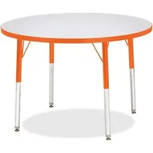Round activity table for adults is perfectly sized to let you work comfortably. Laminate is durable and features an easy-to-clean surface. TRUEdge is permanently thermo-fused to the edges to prevent chipping. Extra-safe, dual-screw steel legs allow you to easily adjust the height of the table. Powder-coated, adjustable legs can be repositioned in 1" increments to provide maximum comfort. Leg guides reduce squeaks, prevent snags and eliminate rusting.