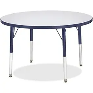 Let children safely work on their favorite arts and crafts on this round activity table. Freckled gray laminate is durable and features an easy-to-clean surface. TRUEdge is permanently thermo-fused to the edges to prevent chipping. Extra-safe, dual-screw steel legs allow you to easily adjust the height of the table. Powder-coated, adjustable legs can be repositioned in 1" increments to provide maximum comfort for children. Leg guides reduce squeaks, prevent snags and eliminate rusting.