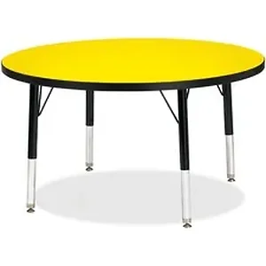 Let children safely work on their favorite arts and crafts on this round activity table. Laminate is durable and features an easy-to-clean surface. TRUEdge is permanently thermo-fused to the edges to prevent chipping. Extra-safe, dual-screw steel legs allow you to easily adjust the height of the table. Powder-coated, adjustable legs can be repositioned in 1" increments to provide maximum comfort for children. Leg guides reduce squeaks, prevent snags and eliminate rusting.